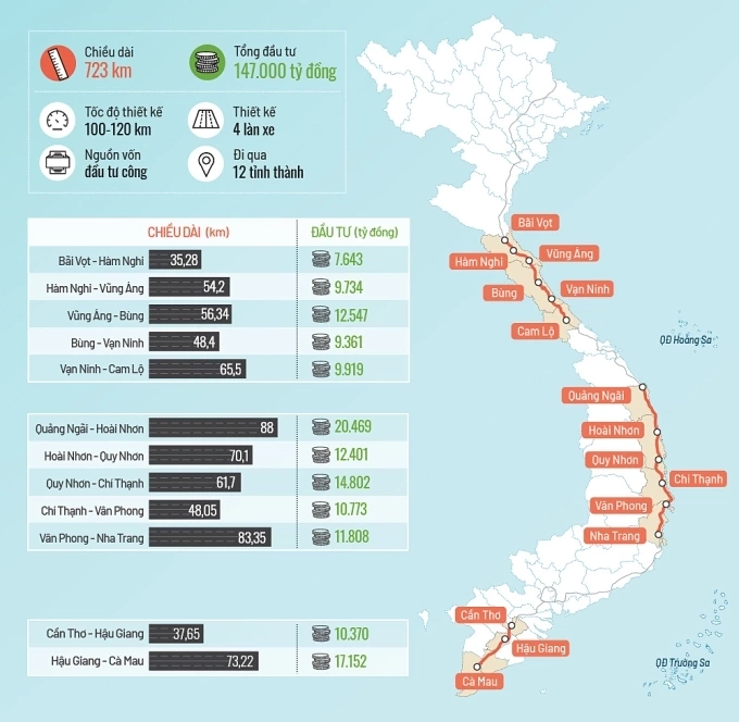 6 dự án cao tốc Bắc Nam gồm Quảng Ngãi – Hoài Nhơn, Hoài Nhơn – Quy Nhơn, Quy Nhơn – Chí Thạnh, Chí Thạnh – Vân Phong, Cần Thơ – Hậu Giang, Hậu Giang – Cà Mau sẽ được thông xe tuyến chính vào tháng 12.