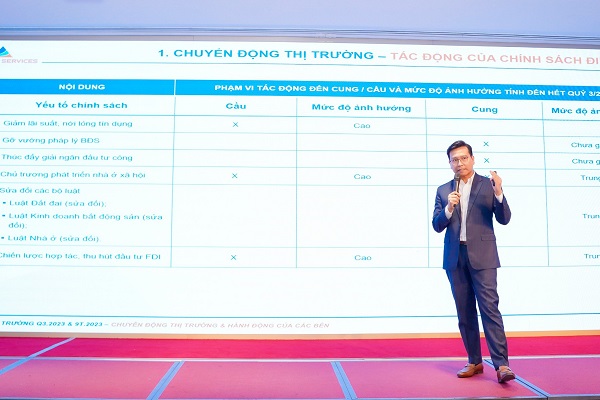 Thông tin về diễn biến thị trường, TS. Phạm Anh Khôi, Viện trưởng Viện nghiên cứu Kinh tế - Tài chính bất động sản Dat Xanh Services cho biết, quý III/2023, các chủ đầu tư đều nỗ lực ra hàng. Đồng thời, thị trường cũng ghi nhận sự cạnh tranh khốc liệt về chính sách và cách thức bán hàng của các doanh nghiệp.