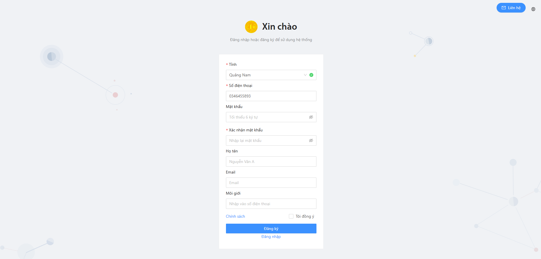 - Nhập đầy đủ thông tin và chọn khu vực (tỉnh, huyện, xã).