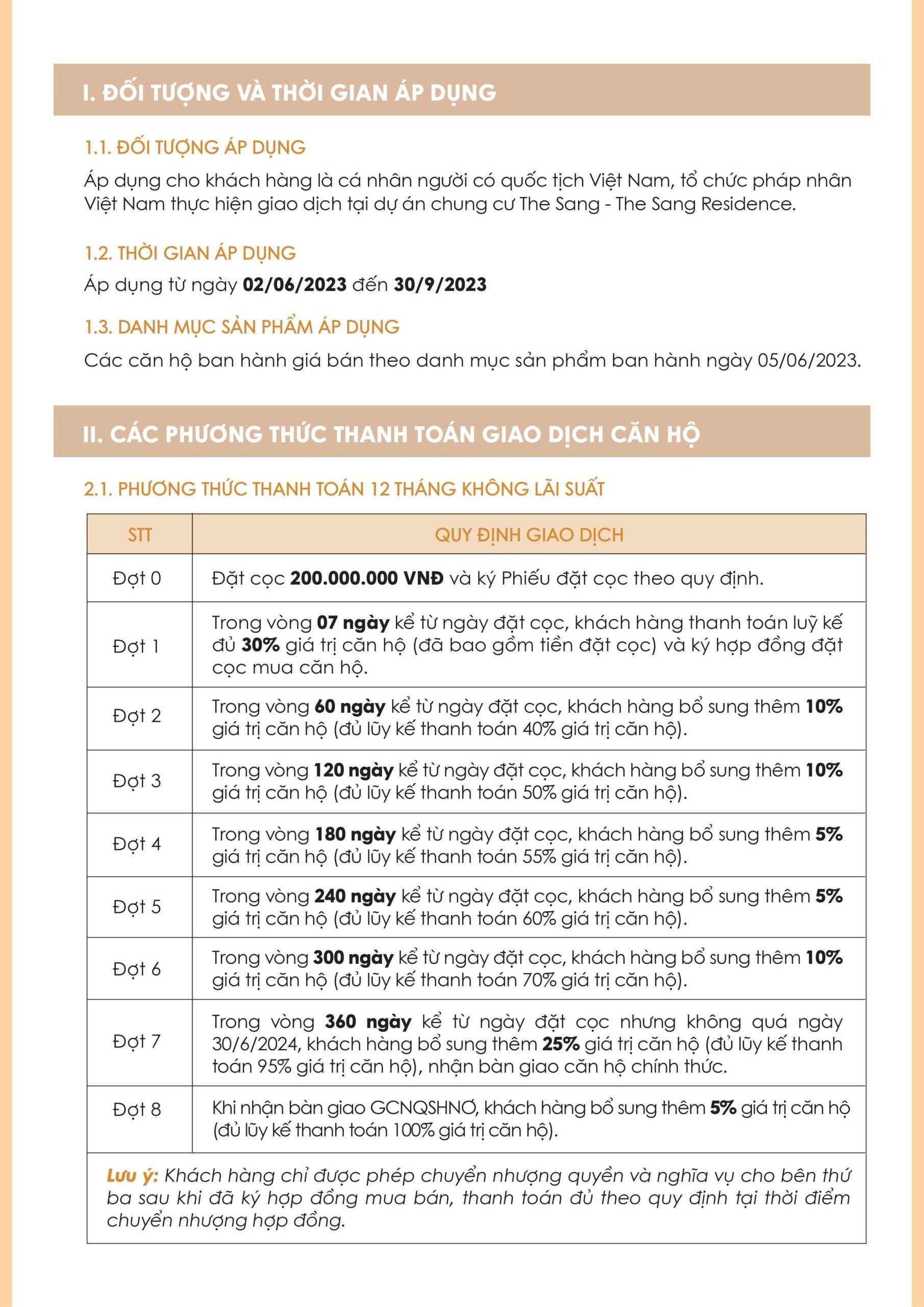 Chính sách bán hàng dự án The Sang Residence cập nhật mới nhất