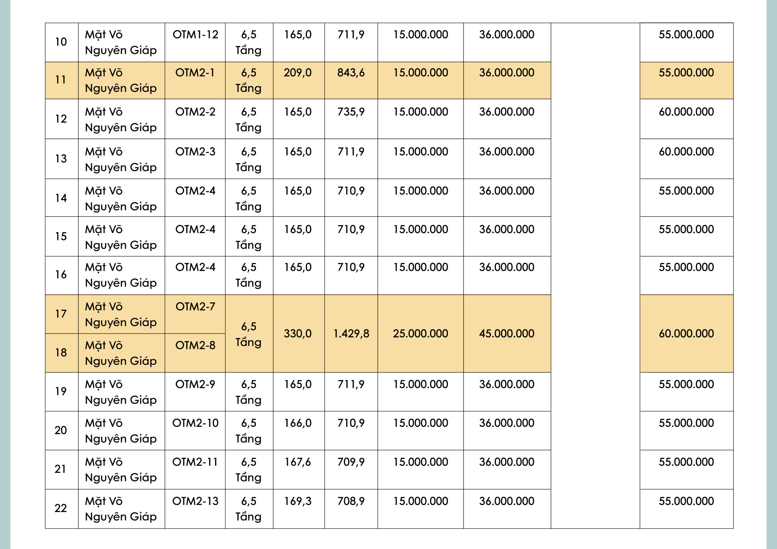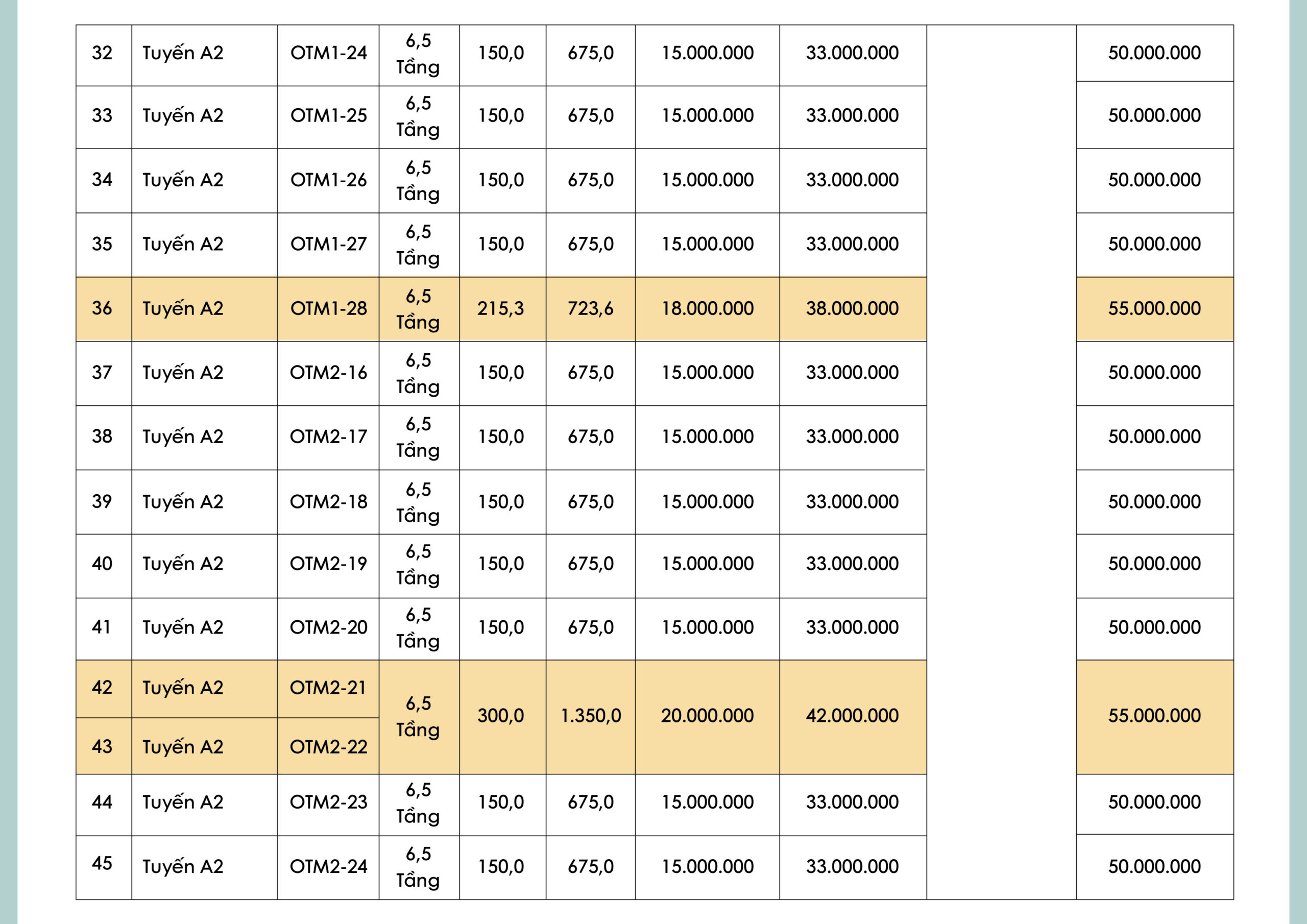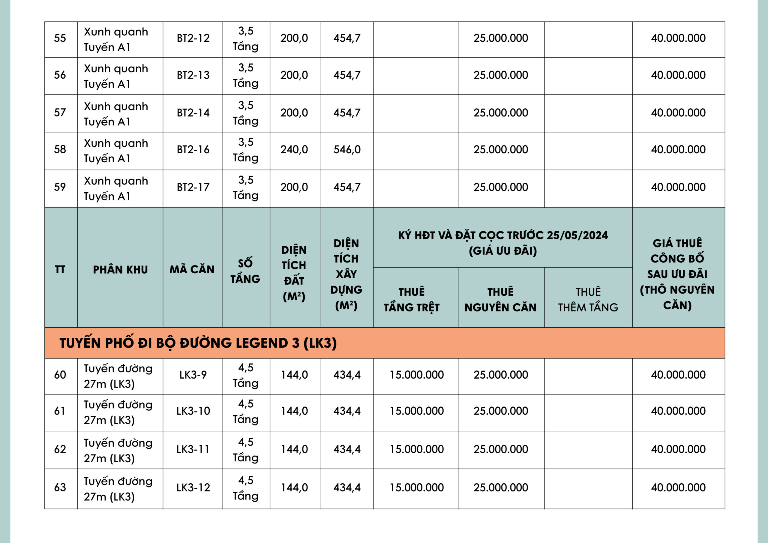 + Danh sách quỹ căn và quy hoạch ngành cho thuê Chương trình cơ hội vàng: