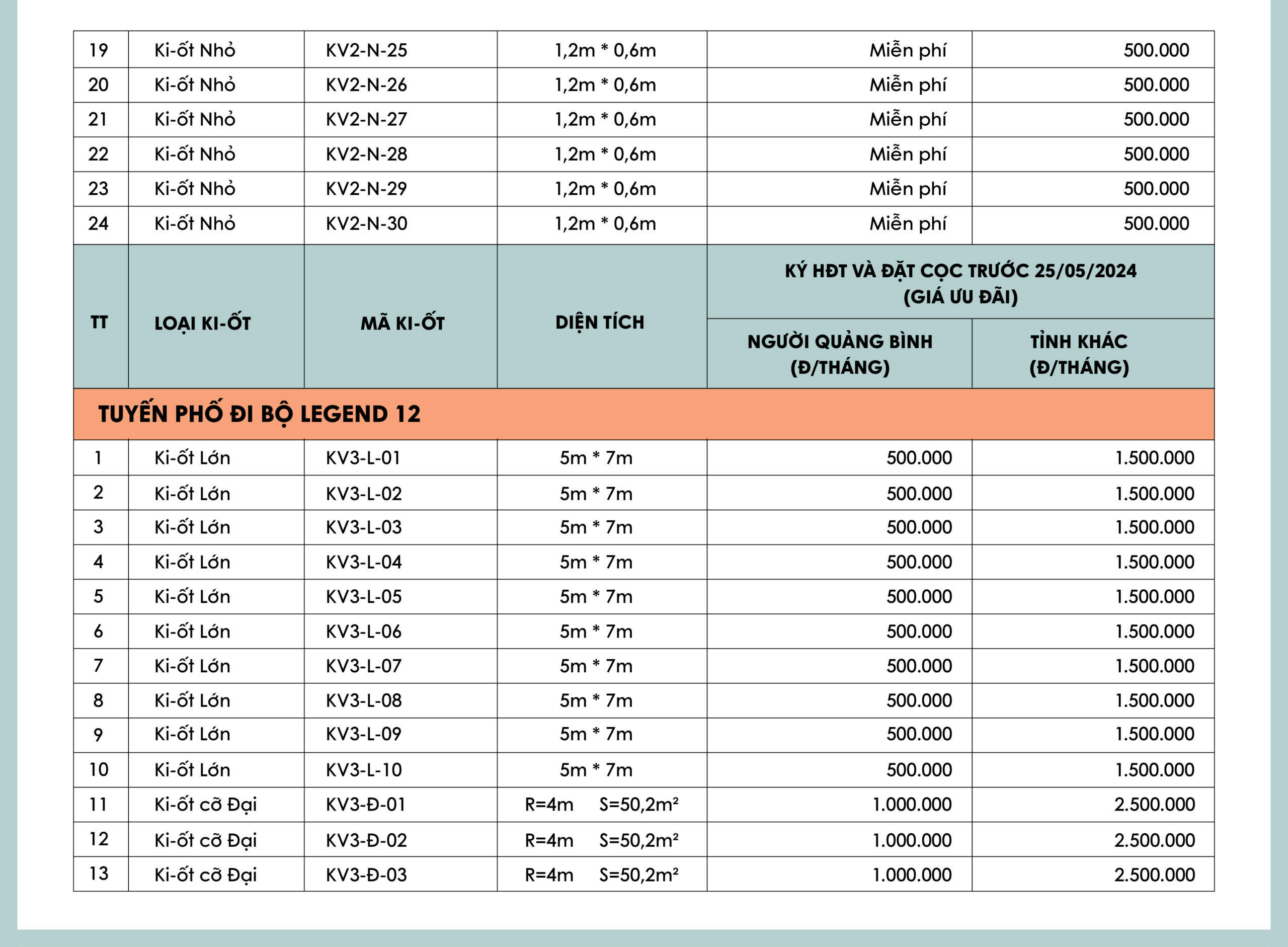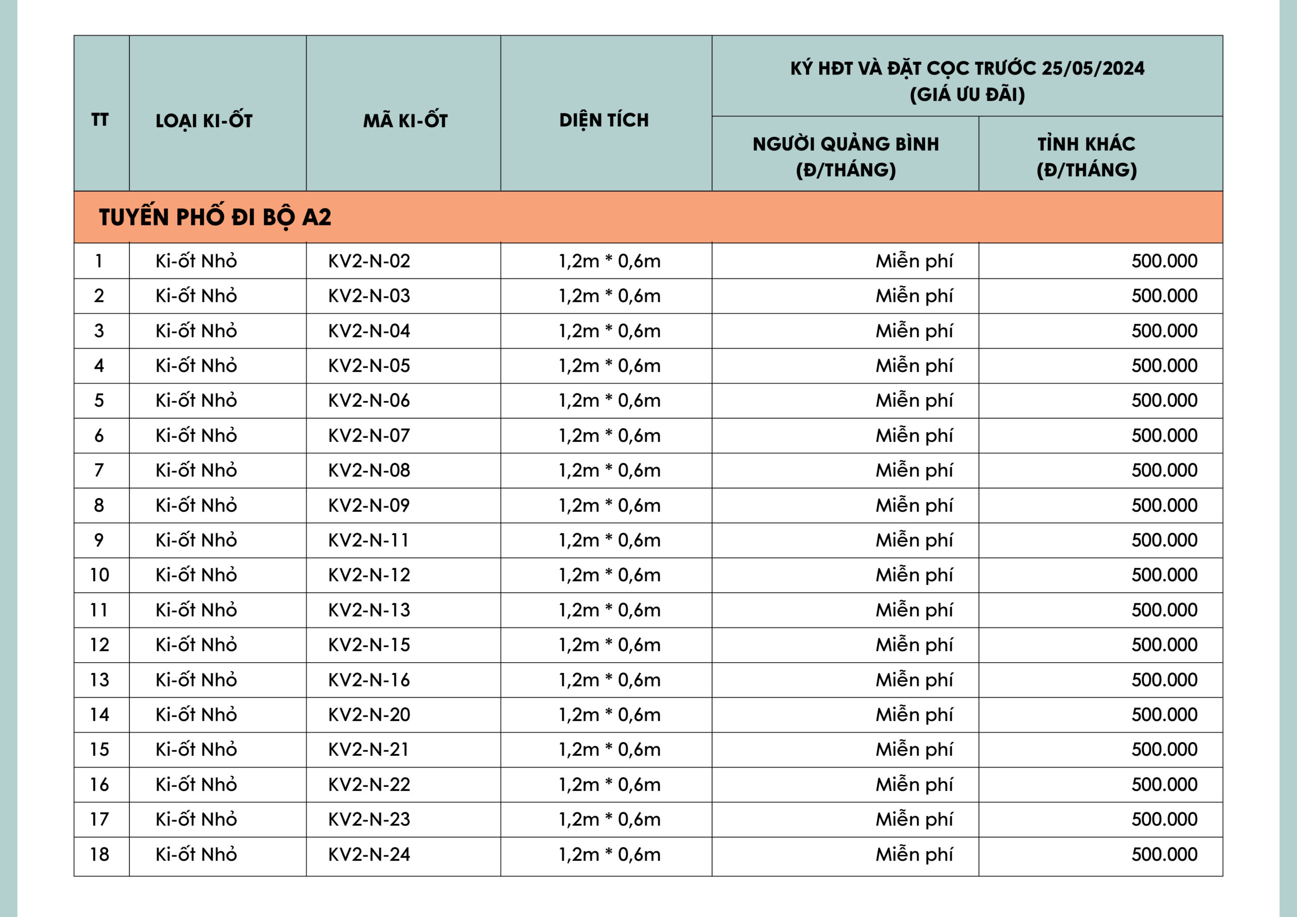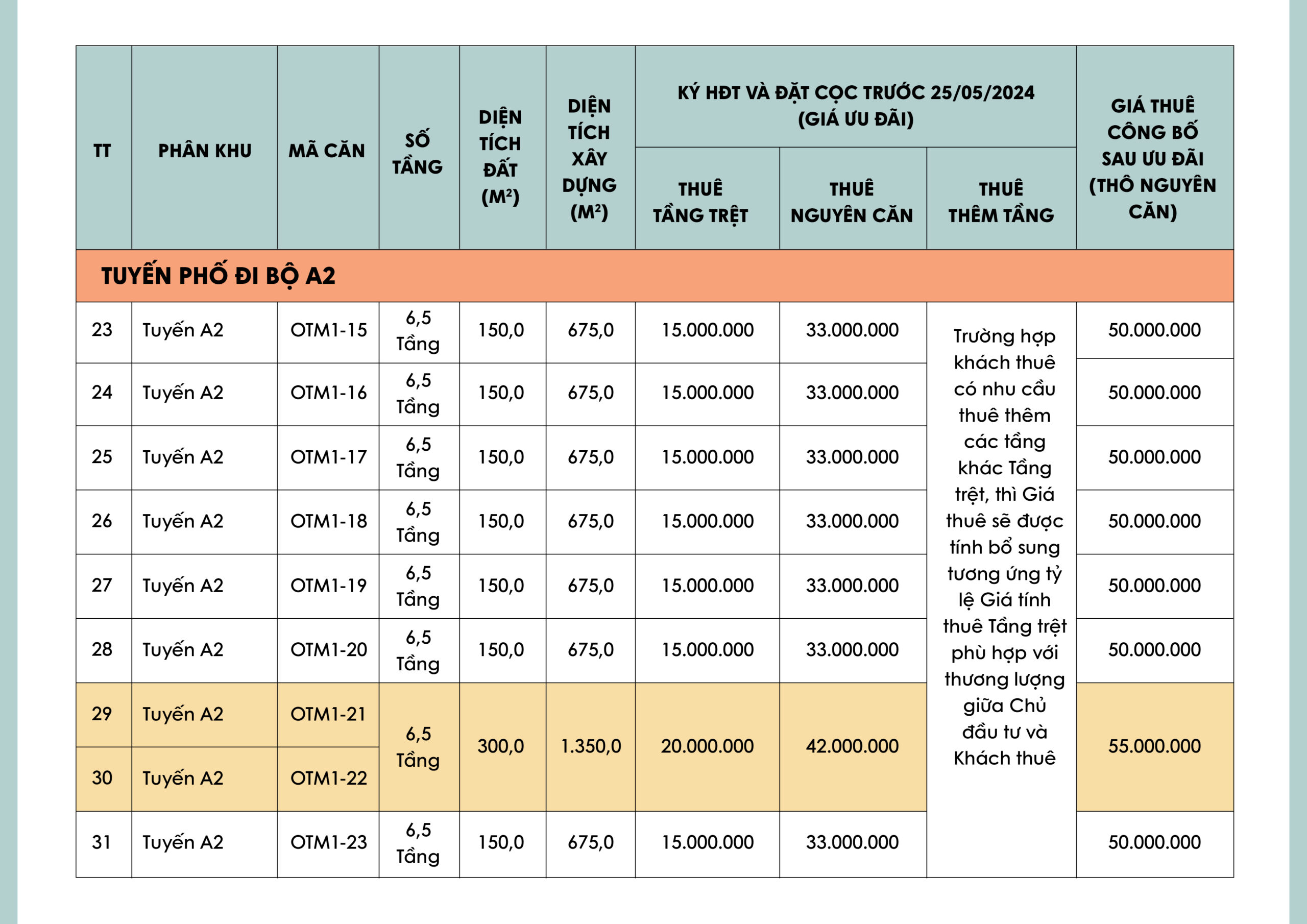 + Đối với tiền cọc: Đặt cọc phí 03 tháng để ký kết hợp đồng (theo giá thuê công bố).