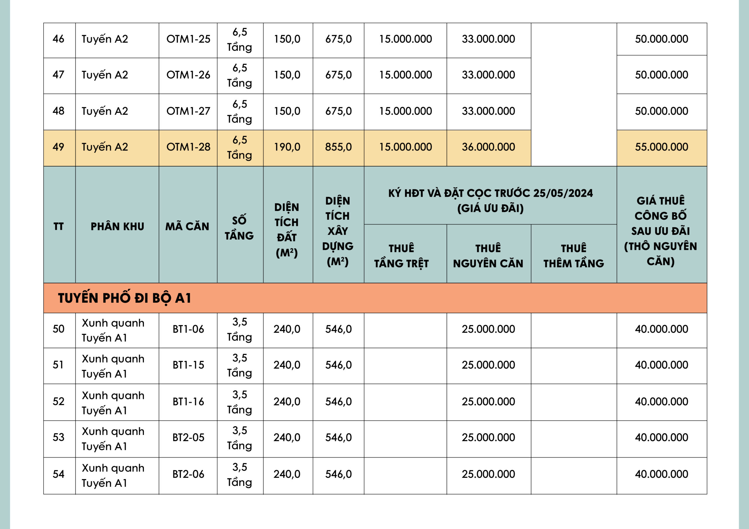 - Áp dụng cho các khách thuê ký hợp đồng trước ngày 25.05.2024, khai trương vận hành trước theo quy định từng ngành hàng