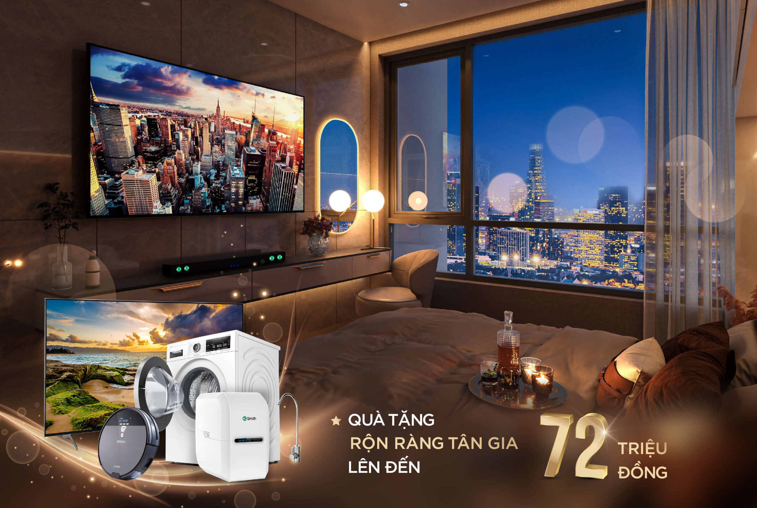 Để rút ngắn khoảng cách sở hữu The Sang Residence, khách hàng sẽ được tạo điều kiện, hưởng nhiều chính sách hỗ trợ tuyệt vời như hỗ trợ lãi suất 0% trong vòng 12 tháng kể từ ngày giải ngân lần đầu tiên, ân hạn nợ gốc trong vòng 12 tháng, được hỗ trợ vay tối đa 70% trong vòng 20 năm từ rất nhiều ngân hàng uy tín như NCB, MB Bank, VP Bank,.. Ngoài chính sách hỗ trợ về tài chính, The Sang Residence còn dành tặng những chương trình chiết khấu ưu đãi 1% trên giá bán dành cho khách hàng cũ hoặc 1 - 2% dành cho khách hàng sỉ. Chuong trình ưu đãi "Rộn ràng Tân Gia" với tổng giá trị quà tặng lên đến 72 triệu đồng. Để The Sang Residence trở thành “công cụ chuyển hóa lợi nhuận”, Quý nhà đầu tư còn có thể hợp tác kinh doanh, khai thác vận hành căn hộ cùng Viet Nam Smart City bắt đầu từ quý II/ 2024 với dòng lợi nhuận thu về lên đến 90% từ việc kinh doanh lưu trú.