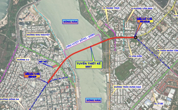 Ở đề xuất lần này, Sở Xây dựng cho biết công trình hầm vượt sông Hàn dài 1,67 km, gồm hầm kín vượt sông Hàn 600 m, hầm kín trên bờ 380 m và hầm hở 415 m, điểm đầu kết nối từ đường Đống Đa, điểm cuối là đường Vân Đồn.