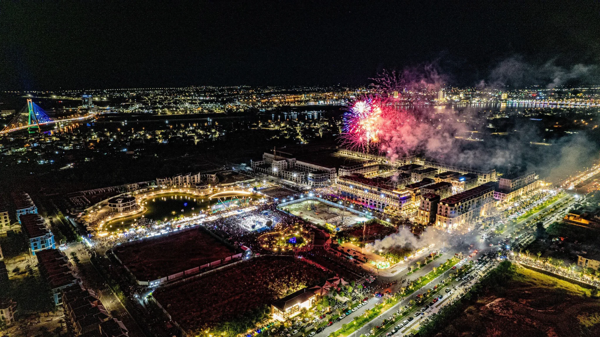 Theo ghi nhận tại khu đô thị Regal Legend, khoảng 19h tối, trước khi chương trình biểu diễn pháo hoa và đại nhạc hội EDM bắt đầu, hàng chục nghìn người dân và du khách đã có mặt từ sớm để lựa chọn chỗ đẹp, cùng tham quan các tuyến phố đi bộ và thưởng thức ẩm thực đặc sắc vùng miền.