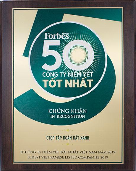 Chứng nhận của Đất Xanh đạt Top 50 công ty niêm yết tốt nhất Việt Nam 2019