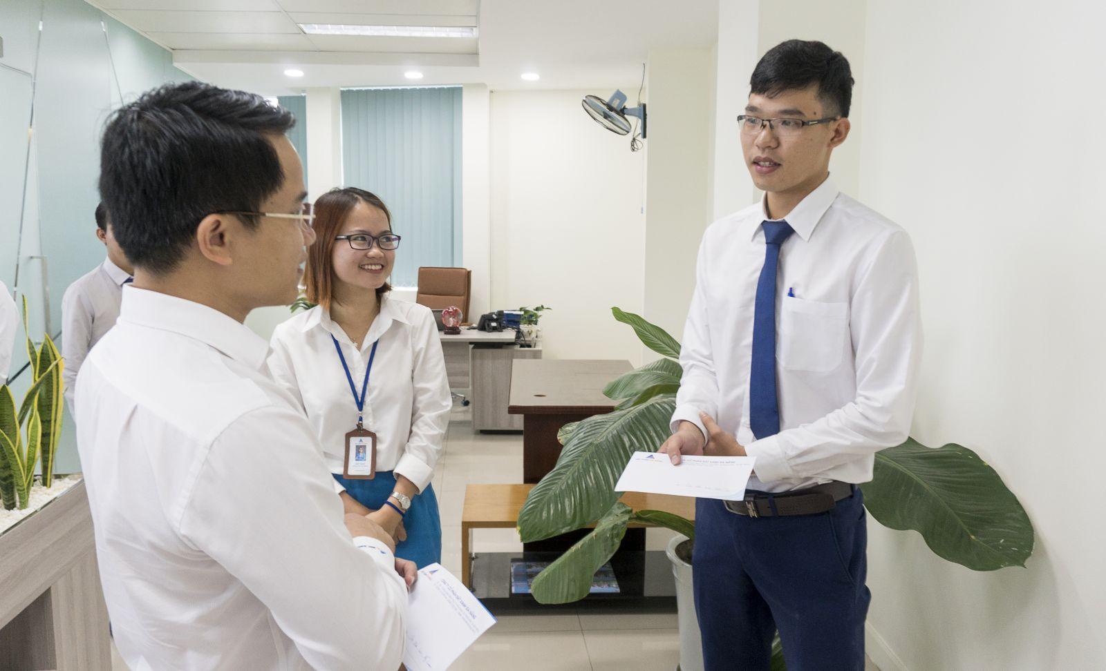 Bạn Nguyễn Văn Tân – NVKD phòng kinh doanh 2 chia sẻ: “Tôi thật sự rất cảm động và không biết nói gì hơn với tấm lòng của toàn thể anh/chị/em công ty cũng như Ban Lãnh Đạo. Tôi sẽ cố gắng hoàn thành thật tốt công việc để thể hiện lời cám ơn đúng nghĩa nhất đến Ban Lãnh Đạo và anh em.”