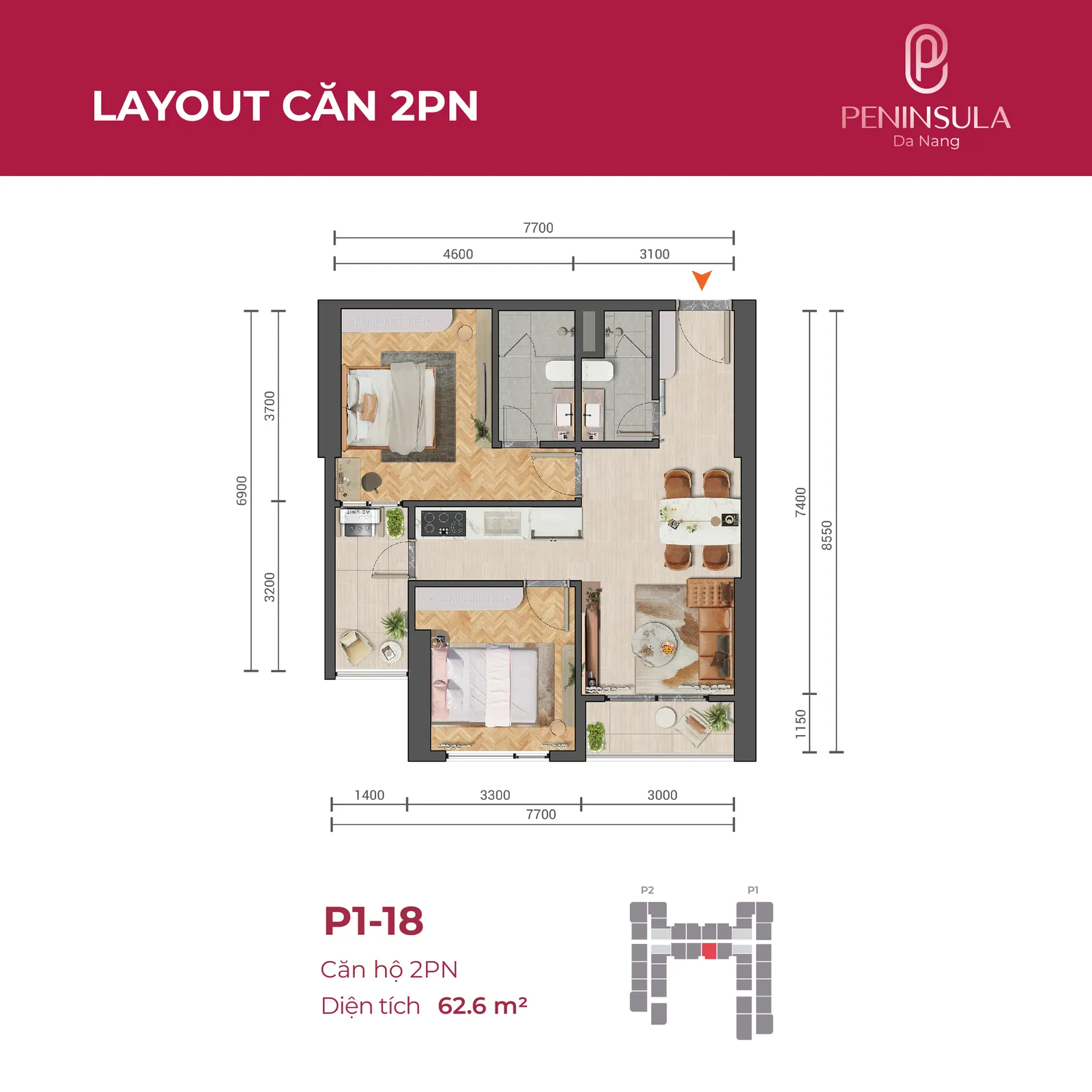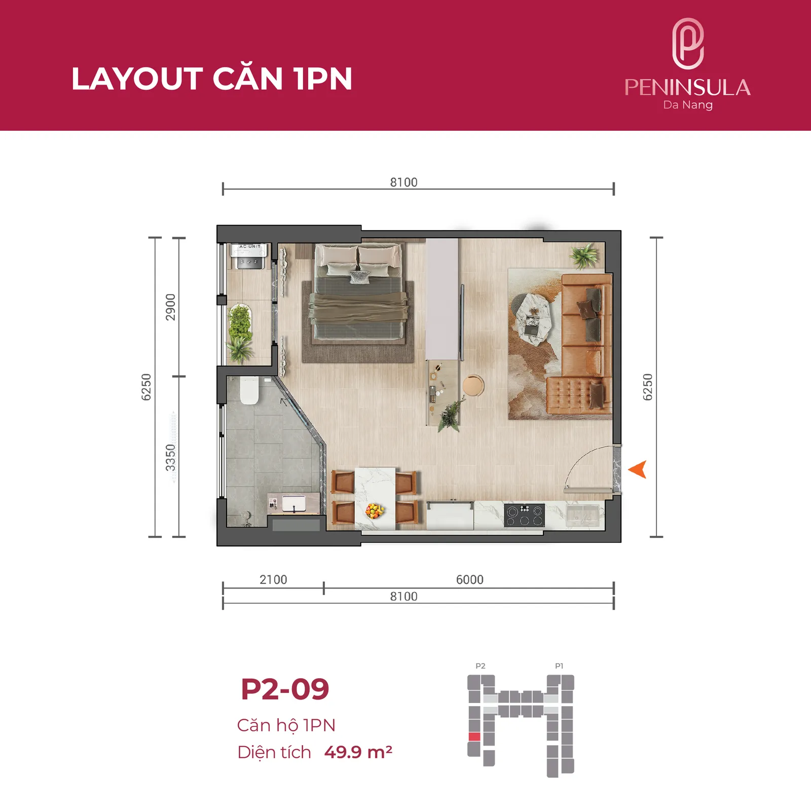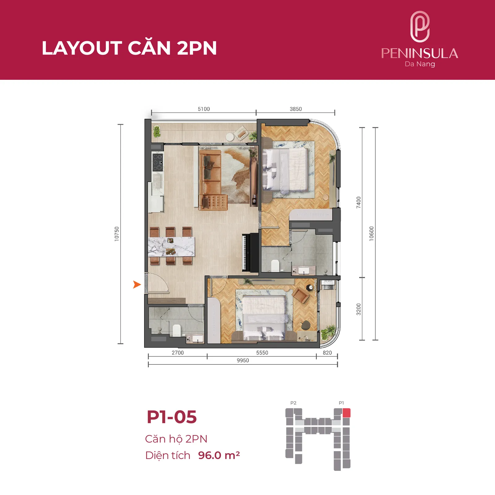 Sở hữu vị trí đắc địa bên bờ sông Hàn, 4 mặt đường ấn tượng Lê Văn Duyệt – Hồ Hán Thương – Nại Hưng 1 – Bùi Dương Lịch với tọa độ trung tâm của bốn thế Núi – Sông – Biển và trung tâm TP.Đà Nẵng phồn vinh, Peninsula Da Nang khẳng định vị thế độc tôn, riêng một đẳng cấp sống nghỉ dưỡng.