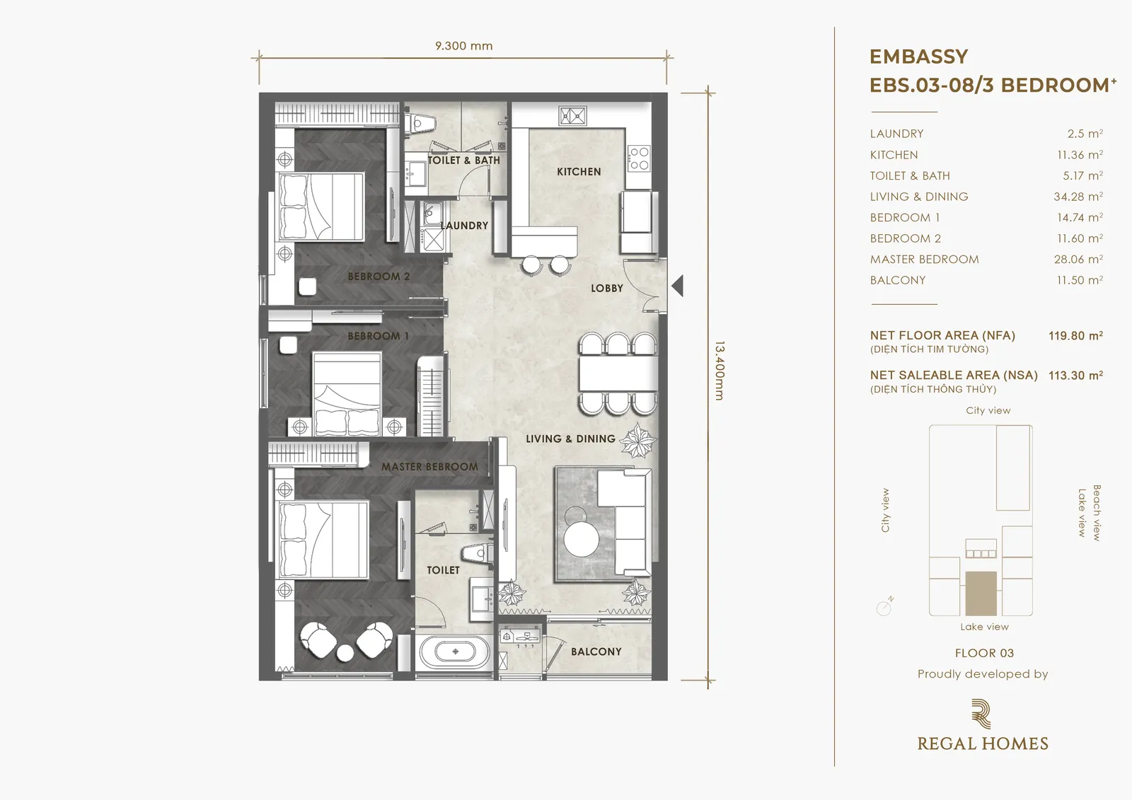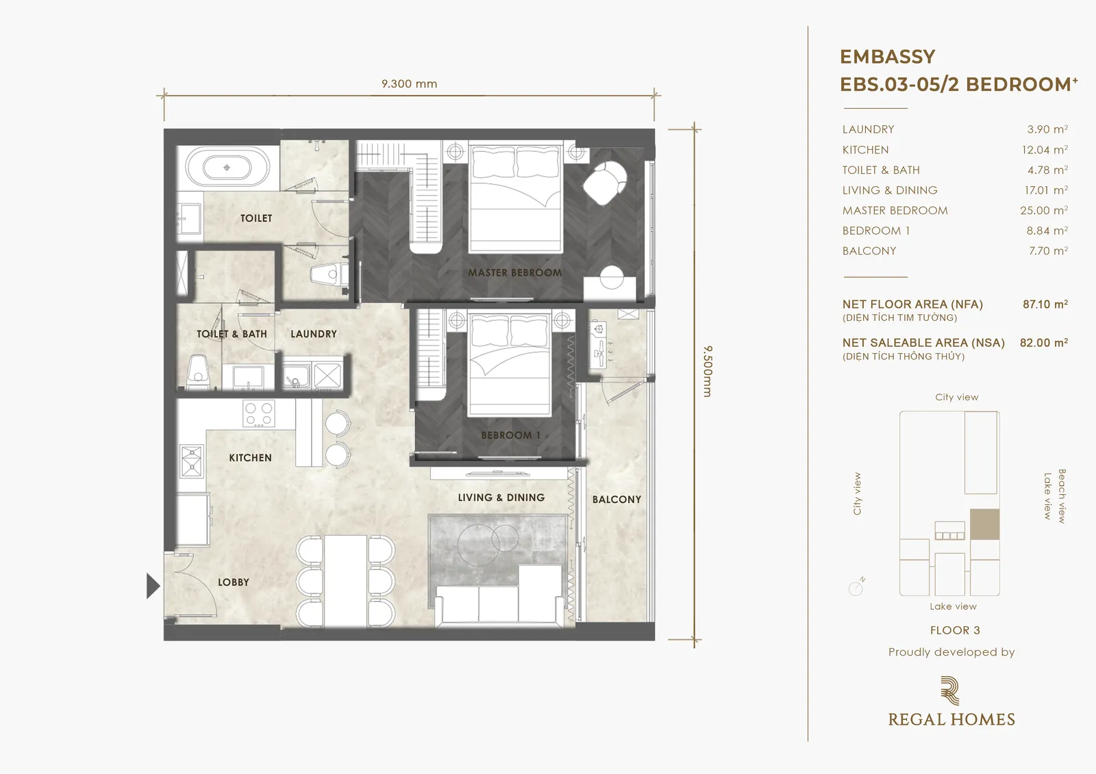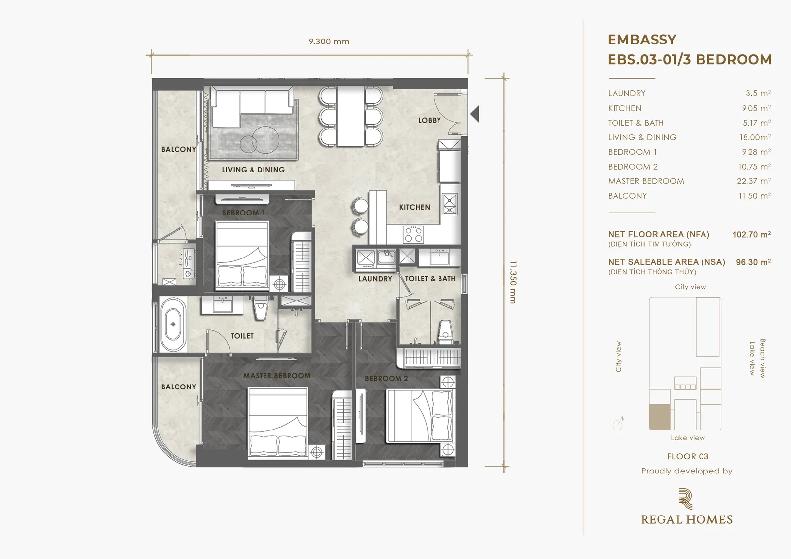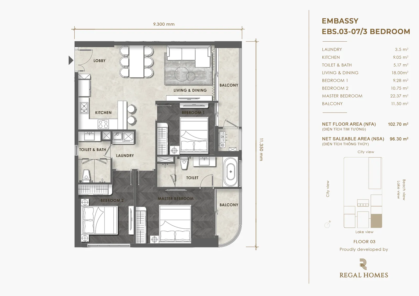 Dự án Regal Complex là khu phức hợp 5 sao đến từ thương hiệu Regal Homes, sở hữu 683 căn hộ, 3 tầng thương mại với hàng trăm tiện ích giải trí, F&B, giáo dục, sức khỏe; đồng thời kiến tạo nên không gian sống với hệ sinh thái tự nhiên, mang đến những đặc quyền riêng cho cư dân khu đô thị.