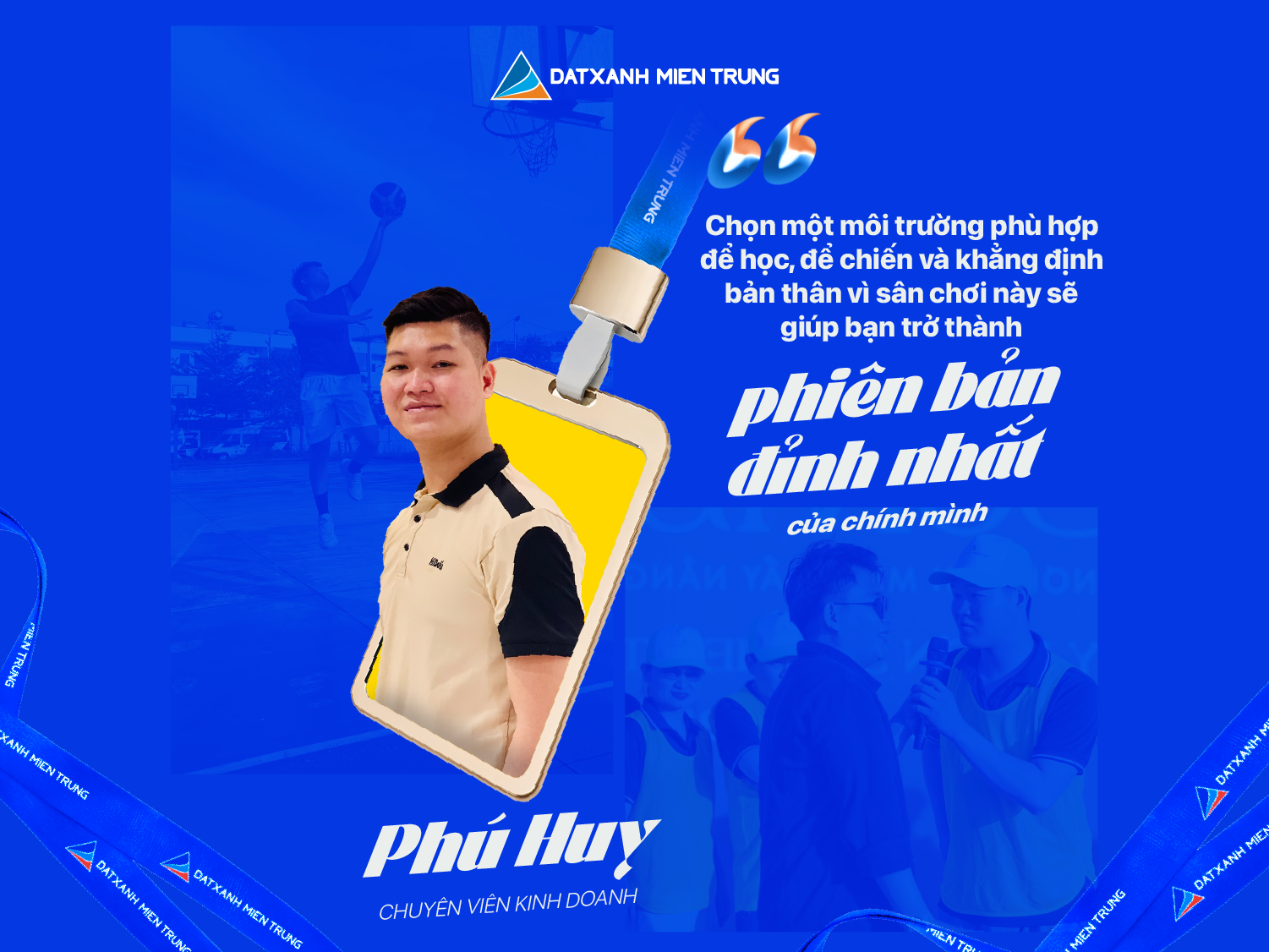 Phú Huy cũng có một lời nhắn đặc biệt dành cho các bạn trẻ Gen Z: “Hãy chọn một môi trường phù hợp để học, để chiến và khẳng định bản thân vì sân chơi này sẽ giúp bạn trở thành phiên bản đỉnh nhất của chính mình.” Đối với Huy, Đất Xanh Miền Trung không chỉ là một đơn vị để làm việc mà chính là ở đây anh đã tìm thấy niềm đam mê và bứt phá mọi giới hạn của bản thân.