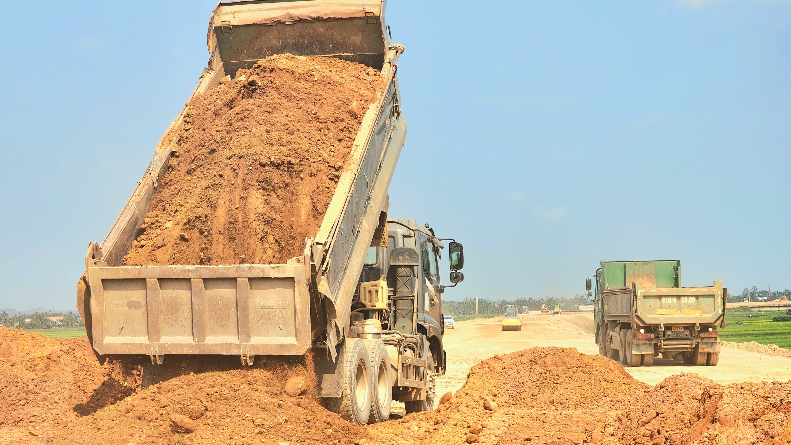 Ông Bùi Nhật Hiển - Giám đốc điều hành dự án cho biết, sản lượng đất đắp toàn dự án còn khoảng 1,7 triệu m3, trong đó tuyến chính khoảng 700.000m3, còn lại là đường gom, đường dẫn... Nguồn đất cơ bản đáp ứng đủ thi công.