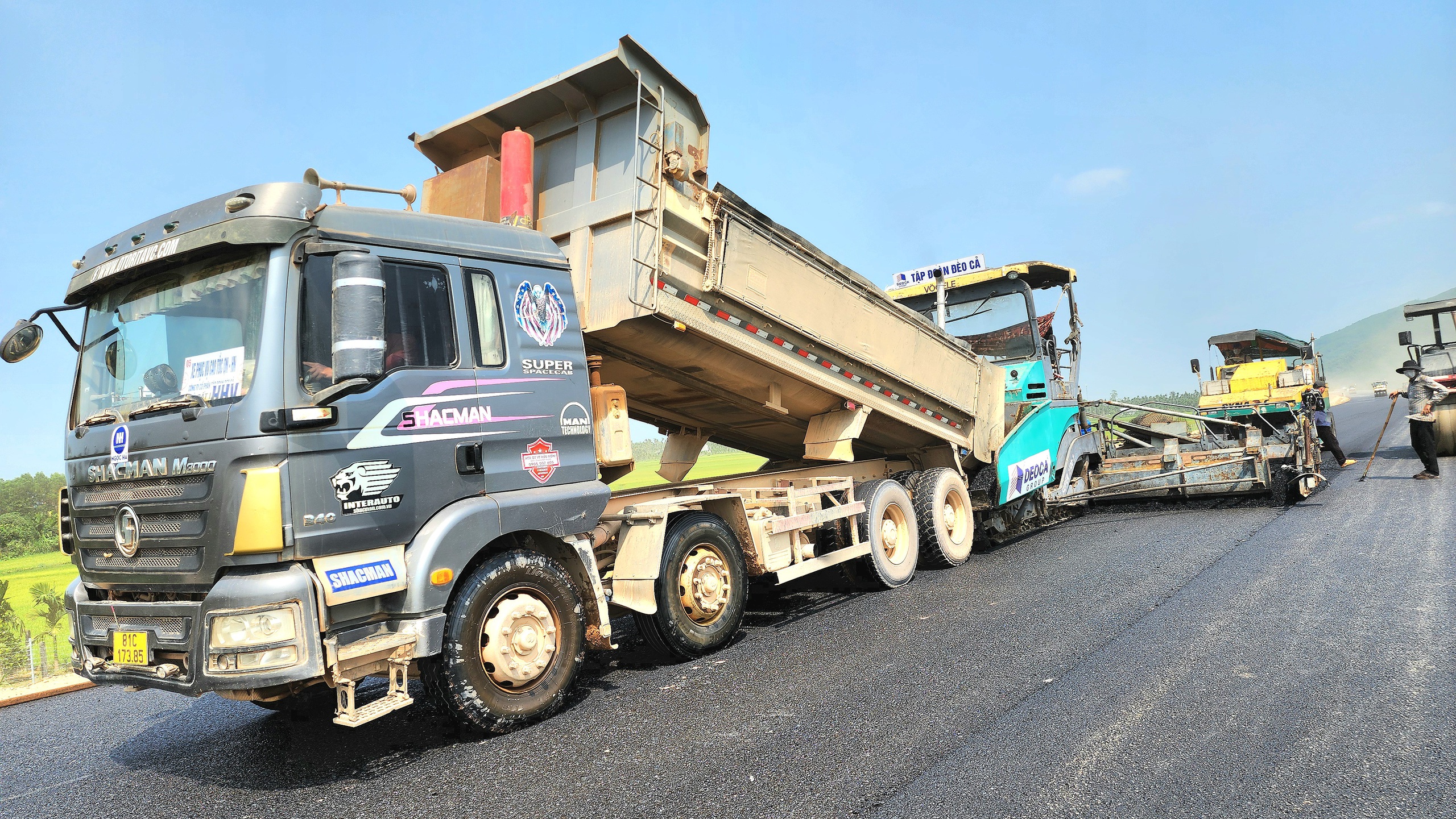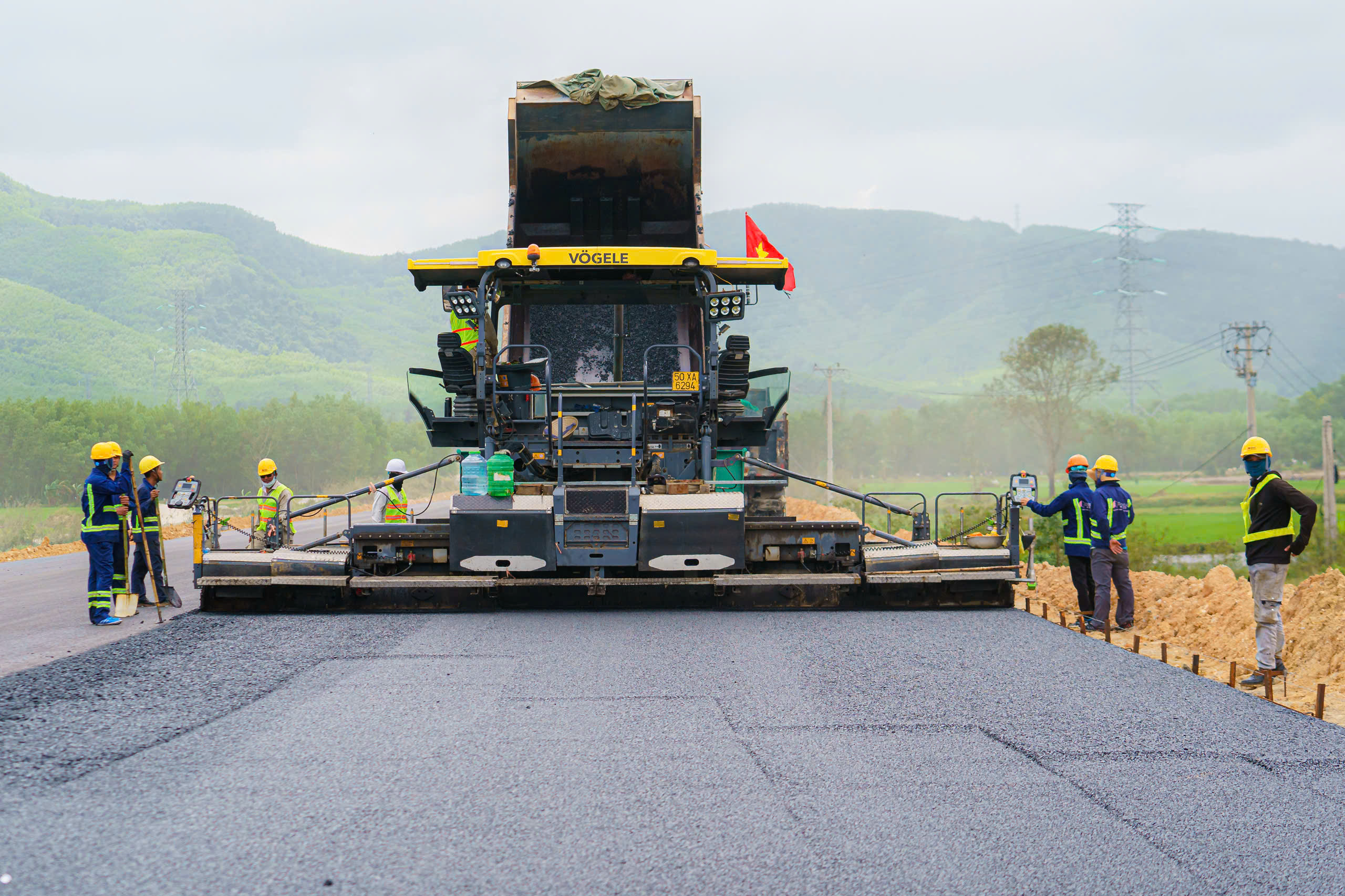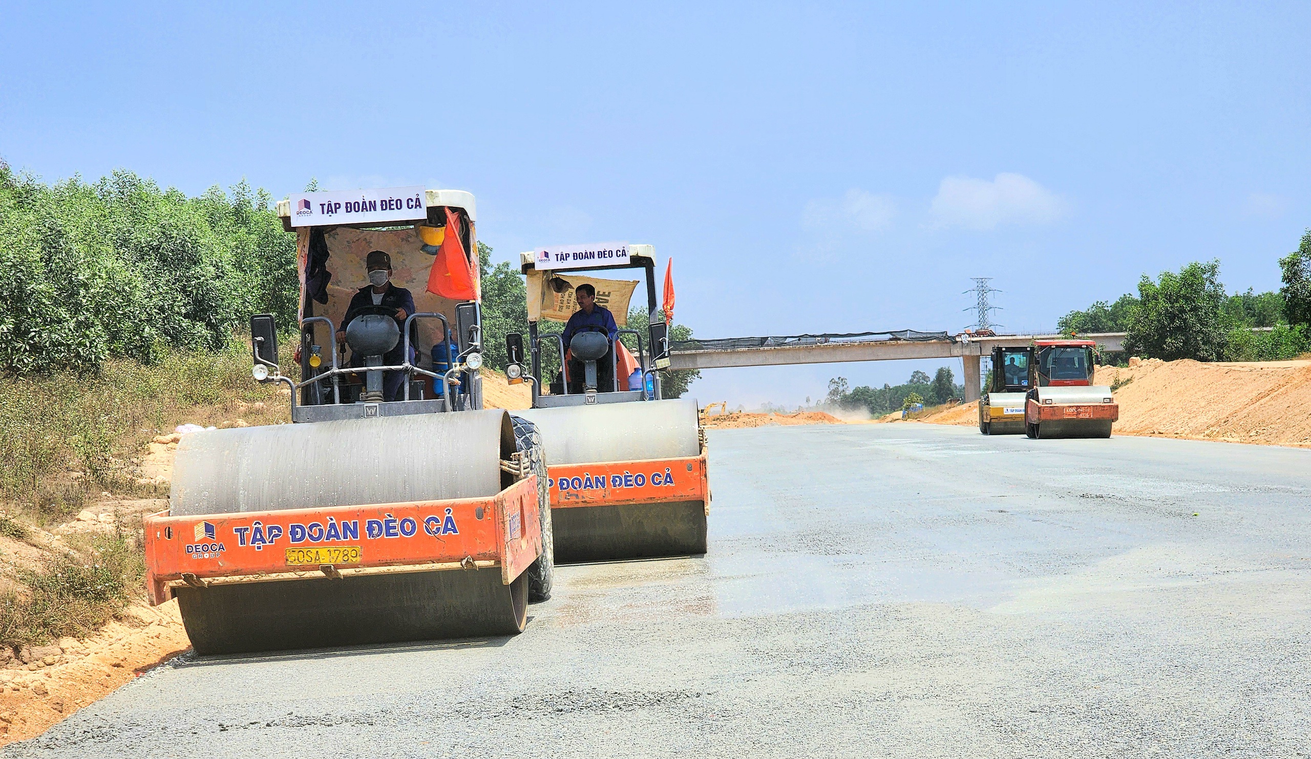 Ông Ngọ Trường Nam - Tổng giám đốc Công ty CP Tập đoàn Đèo Cả cho biết, để đảm bảo tiến độ dự án, ngoài thiết bị đang có, đơn vị đã mua mới 5 máy rải bê tông nhựa, huy động thêm đội xe lu từ các dự án khác đến công trường để tăng tốc thi công, đảm bảo nền đường xong đến đâu thảm bê tông nhựa đến đó.