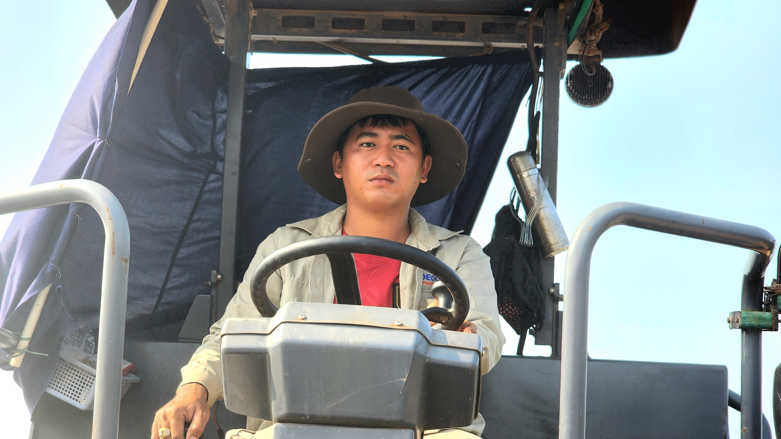 Công nhân lái máy lu Lê Trí Hải, quê tỉnh Phú Yên cho biết, anh bám dự án từ ngày khởi công, những ngày qua thời tiết nắng nóng oi bức, song vì tiến độ dự án anh em công nhân quyết bám công trường hoàn thành dự án trong năm 2025.