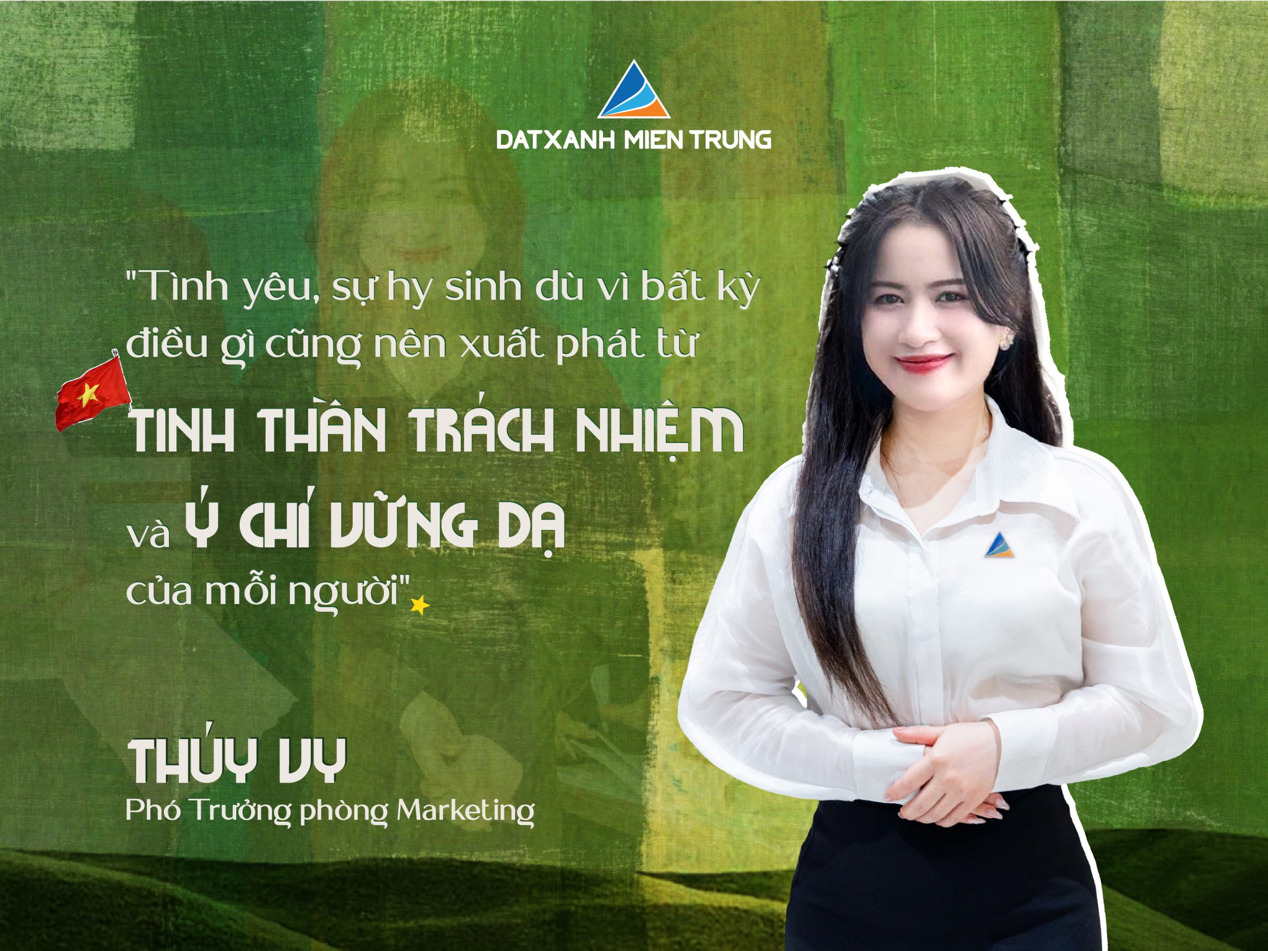 Chính những câu chuyện thấm đẫm lý tưởng đó đã hình thành nơi Vy một tư duy sống rất rõ ràng: “Lòng yêu nước, không đong đếm bằng những cống hiến đao to búa lớn, chỉ cần sống và làm việc với sự tử tế, trách nhiệm, tu dưỡng bản tính, giữ tư duy "sáng, đẹp" là đã có thể ngẩng cao đầu, không thẹn với sự hy sinh của thế hệ cha anh đi trước.” Vy cũng hiểu rằng, không ai bắt chúng ta phải hy sinh lớn lao như các thế hệ trước, nhưng hãy sống sao cho xứng đáng với những gì họ đã đánh đổi. Điều đó bao gồm việc dấn thân vào công việc, không ngừng học hỏi, tử tế với người xung quanh và không bỏ cuộc trước khó khăn – đó chính là cách để tri ân quá khứ và xây dựng tương lai xứng tầm.