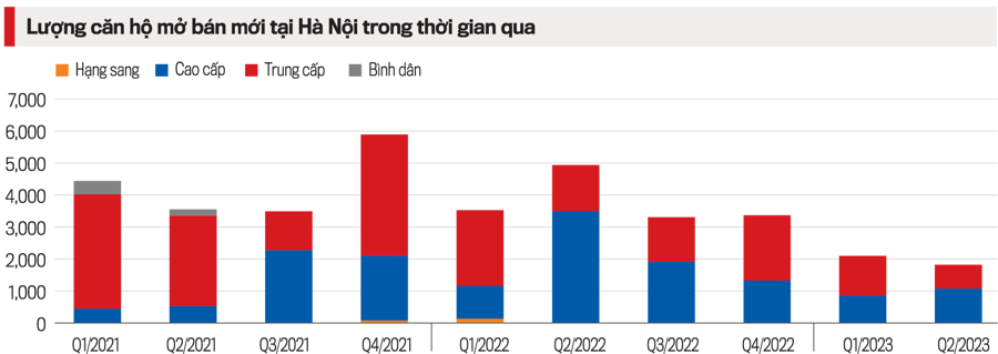 Trong khi đó, nguồn cung thứ cấp của dòng sản phẩm này thì đã có tỷ lệ dân ở ổn định cũng khá cao, khiến nguồn cung cũng hạn chế. Giá trên tất cả các phân khúc từ năm 2021 đã bị đẩy lên ở mức cao khiến người mua để ở và mua để đầu tư hết sức do dự vì quan ngại bị mua phải giá cao cũng như lợi nhuận đầu tư không có hoặc không đạt như kỳ vọng....