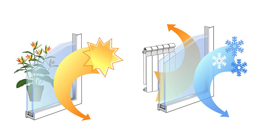 Kính Low-E có một lớp vỏ mỏng trong suốt, có khả năng phản xạ lại nhiệt (hoặc năng lượng hồng ngoại). Khi nhiệt năng bên trong cố gắng truyền ra bên ngoài trong điều kiện thời tiết lạnh hơn vào mùa đông, lớp phủ mỏng này phản chiếu lại nhiệt trở lại bên trong, giảm thiểu sự mất nhiệt qua kính.