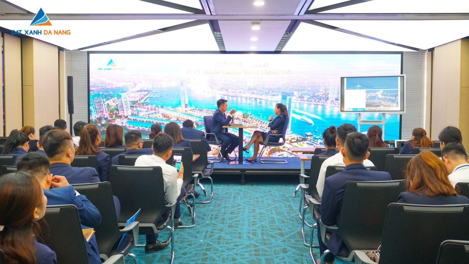 Vào sáng ngày 18/07, chương trình Talkshow “Xu hướng đầu tư BĐS cao cấp của giới thượng lưu” đã chính thức diễn ra tại Trụ sở Đất Xanh Miền Trung, 52 – 54 Võ Văn Kiệt, TP. Đà Nẵng. Chương trình nằm trong khuôn khổ chiến lược đào tạo kinh doanh của Viet Nam Smart City (ĐXĐN), với sự tham dự của đông đảo CBNV Khối Kinh doanh.