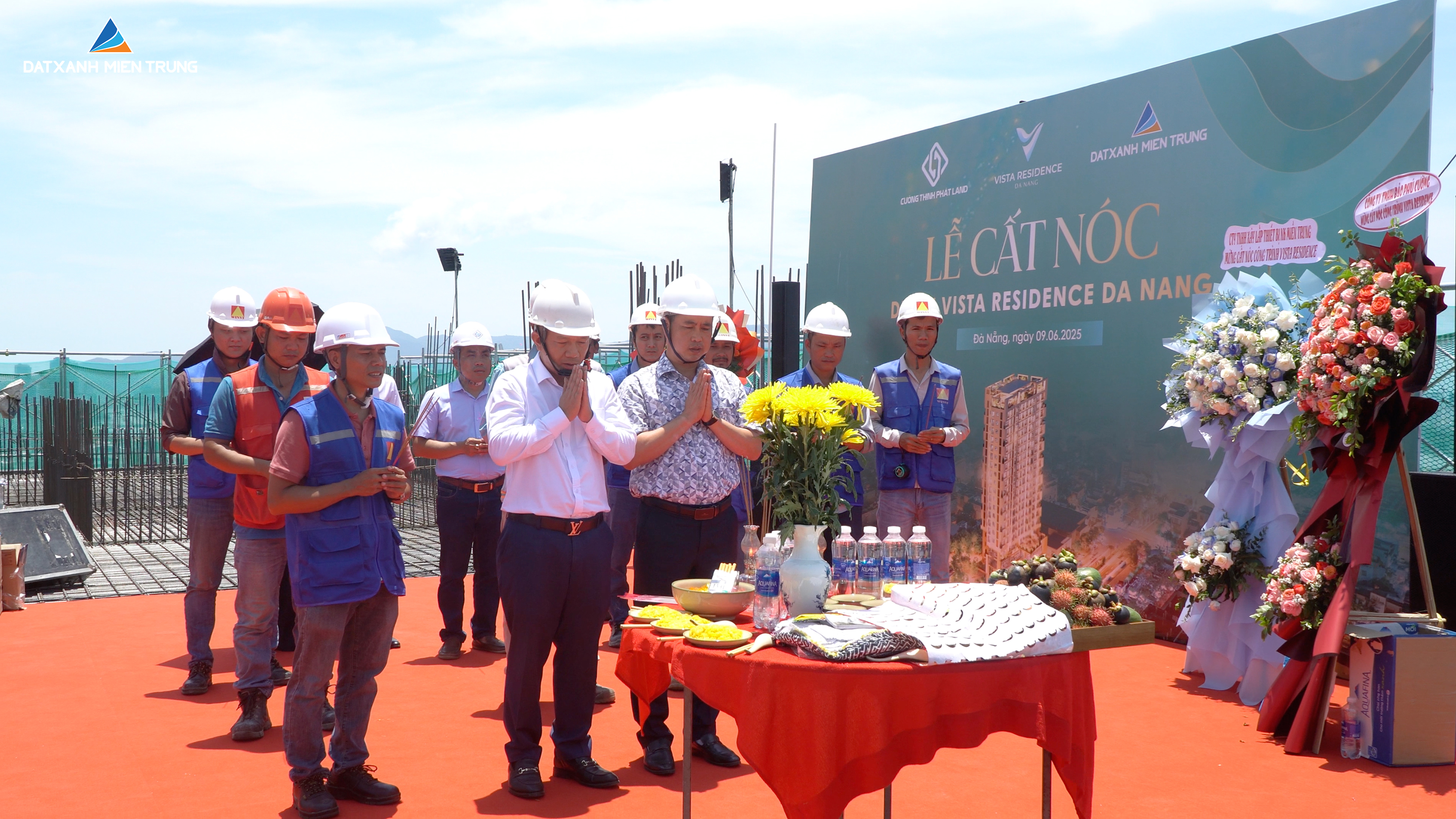 Dự án Vista Residence Da Nang cất nóc sáng 9/6, tiến gần hơn một bước tới cột mốc bàn giao nhà vào quý 1/2026, mang đến sự yên tâm và hài lòng cho khách hàng Đất Xanh Miền Trung.